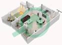 الوحدة 7 - مخططات طابقية ثنائية وثلالثية الأبعاد لتصميم شقق 1 غرفة نوم 2 حمام في بن غاطي هايتس, قرية جميرا الدائرية. يتوفر في بن غاطي هايتس 3 نماذج من المخططات الطابقية لأنواع شقق مختلفة.