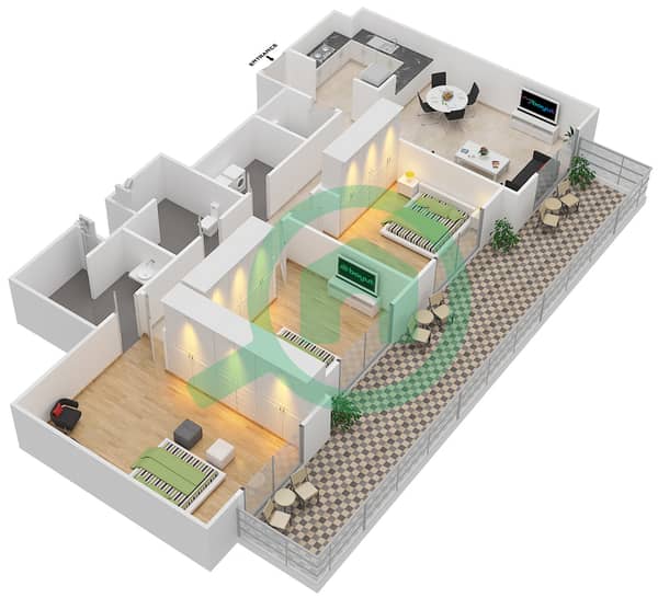 With great pleasure, SNH Properties is offering the large three-bedroom apartment in Sherena Residence, Majan, Wadi Al Safa 3, Dubal Land, for rent.