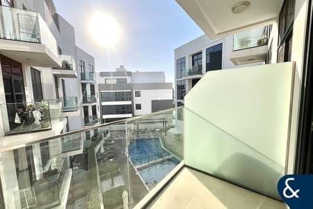 Spacious 1-bedroom with open-plan kitchen, bright living area, and floor-to-ceiling windows. Features a well-sized bedroom with built-in wardrobes, modern bathroom, and a balcony overlooking the community gardens.
