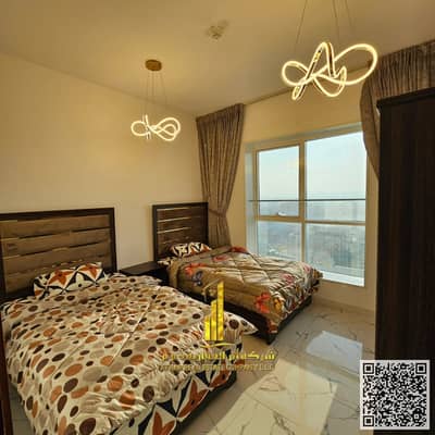 بأطلاله بحريه خياليه شقة غرفتين وصاله مفروشة بالكامل للإيجار في برج الواحة، الراشديه، شارع الميناء، بجانب نستو هايبر ماركت