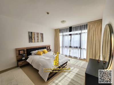 غرفة نوم واسعة مع صالة بفرش راقٍ وجديد كلياً