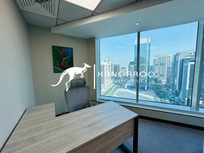 Kangaroo Properties LLC offers you to Elevate your business presence with this stunning outer office in The Prime Tower, offering a breathtaking Burj Khalifa view and a fully serviced workspace designed for comfort, productivity, and prestige.