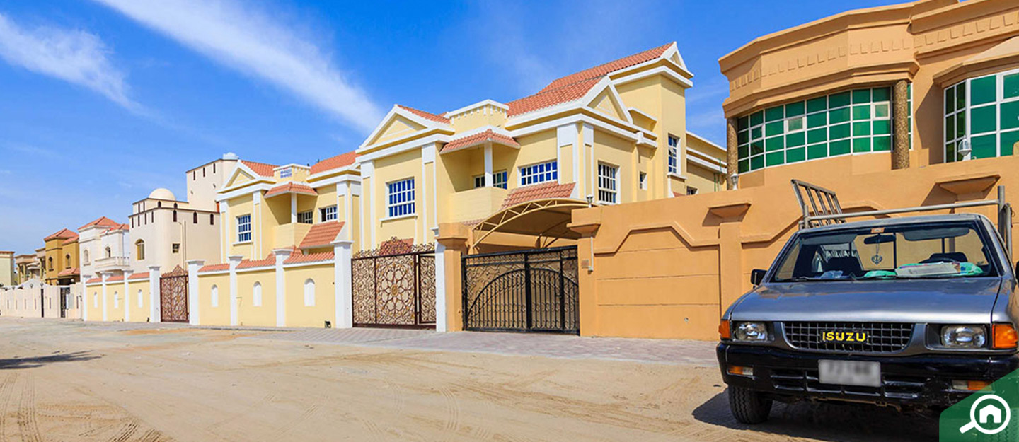There are villas for rent in Al Mowaihat 1. A 5-bedroom villa has a minimum area of 3,200 sq. ft. to 5,000 sq. ft. They feature a master lounge, a master kitchen, a servant’s room and a preparatory kitchen.