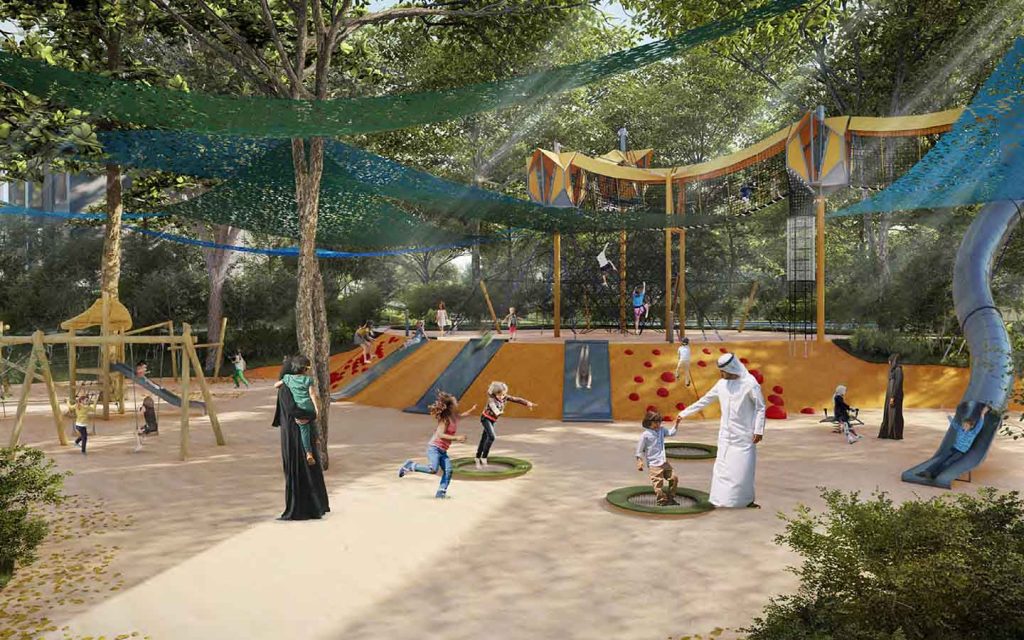أما فلل 5 و6 غرف فتتمتع بمساحات واسعة تجعلها مثالية للعائلات الكبيرة، ويحتضن الطابق الأرضي فيها غرفة عائلية ومنطقة معيشة وتناول الطعام وغرفة خادمة وغرفة ضيوف، في حين يتألف الطابق العلوي من غرف رئيسية مع حمامات ملحقة وخزائن حائط، جنباً إلى جنب مع شرفة واسعة ذات إطلالة خلابة. كما تحظى هذه الفلل الواسعة بمصعد داخلي.