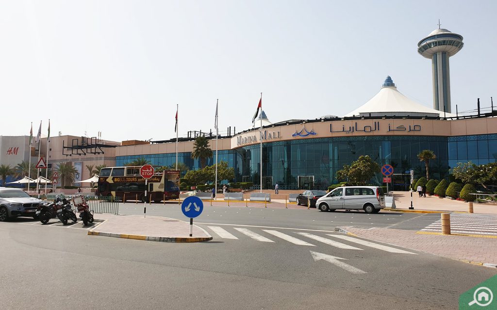 يقع مركز المارينا مول على بعد 10 دقائق بالسيارة عن المنطقة، ويضم أكثر من 400 متجراً من متاجر الماركات المحلية والعالمية، إلى جانب هايبر ماركت وبعض خيارات المطاعم، فضلاً عن عدد من الصرافات الآلية ومكاتب الخدمة التابعة للبنوك، علاوةً على ذلك، يشتمل المركز التجاري على مجموعة من مرافق الترفيه الشهيرة، مثل ماجيك بلانيت وباونس وصالة قرية الإمارات للبولينج وفوكس سينما.