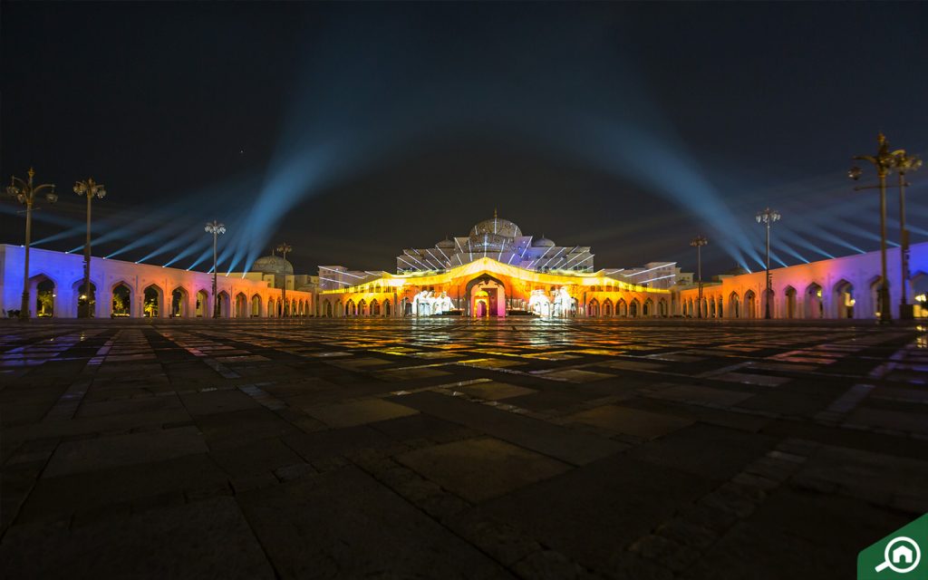 يضم قصر الوطن أبوظبي بعضاً من أكبر المكتبات العامة على مستوى الإمارة، الى جانب العديد من التركيبات الفنية والقاعات الواسعة والعجائب المعمارية، ويقيم القصر الساعة 7:30 مساءً من كل يوم عرضاً ضوئياً مدته 14 دقيقة يسلط الضوء على قصة من ثلاثة فصول تروي ماضي دولة الإمارات وحاضرها ومستقبلها.