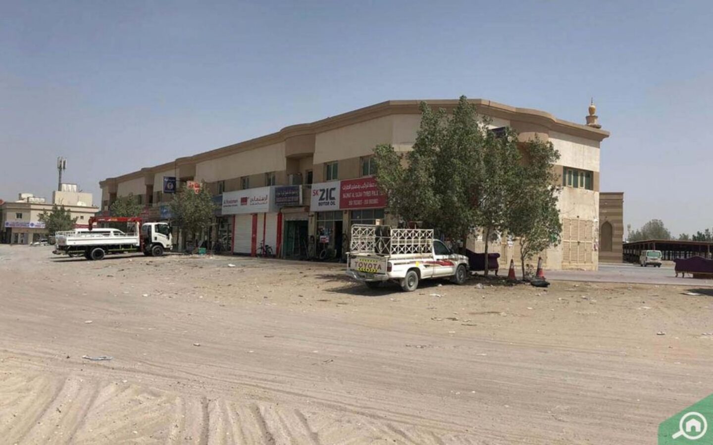 تتألف غالبية المحلات التجارية في المنطقة من محلات صيانة وبيع قطع السيارات الى جانب بعض محلات بيع مواد البناء، ويذكر منها: