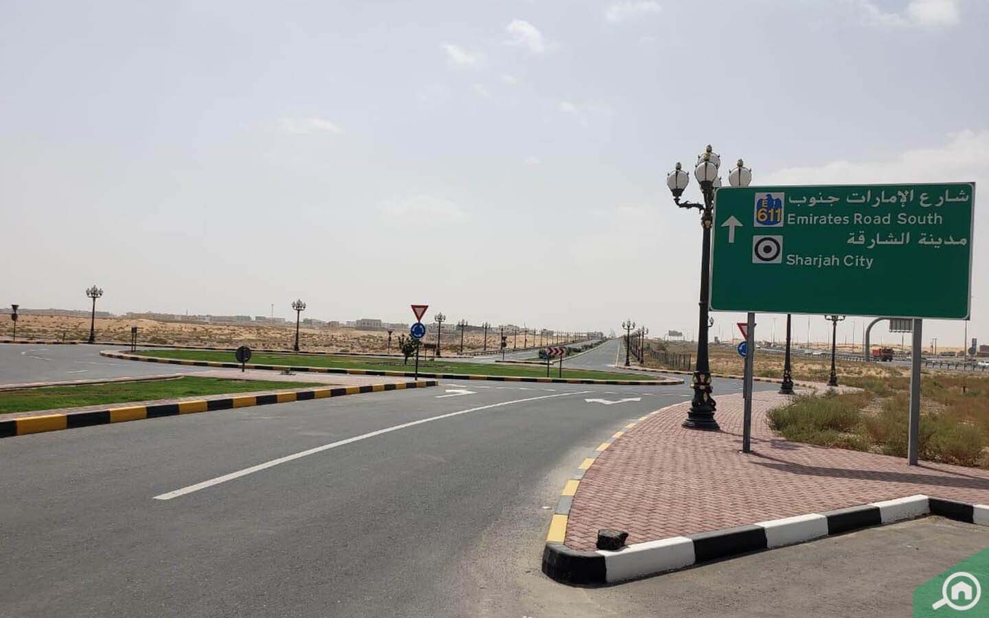 يقع المجمع السكني عند تقاطع الطريقين السريعين الرئيسيين في الشارقة، وهما شارع الإمارات العابر وشارع دبي – عجمان، مما يسهل الوصول إلى جميع أنحاء إمارة الشارقة، وكذلك إلى إمارتيّ عجمان ودبي، ويقع المجمع كذلك بالقرب من العديد من المناطق، مثل الخوانيج والسيوح والقرائن الشارقة والنوف.