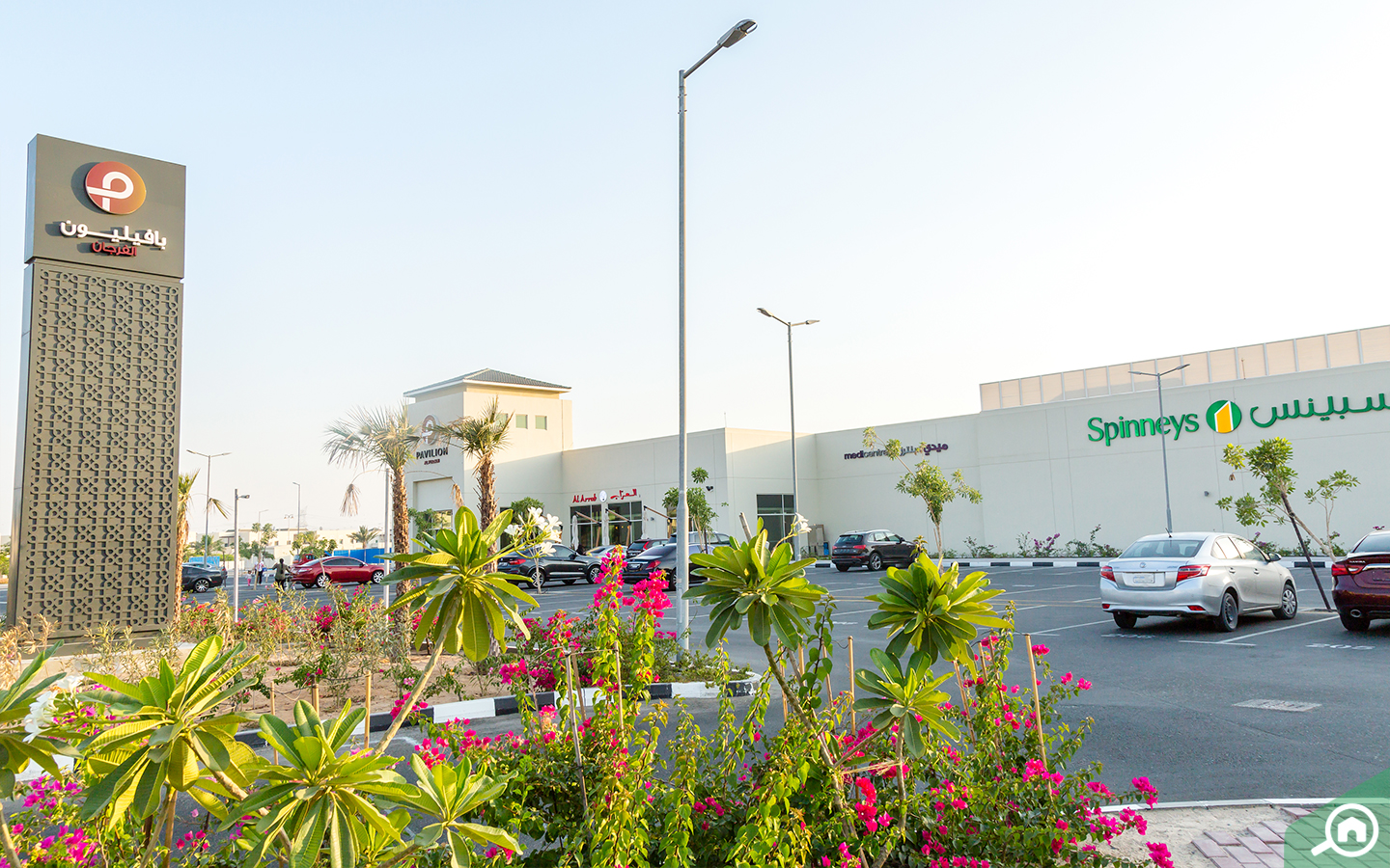 يضم المجمع فرعين اثنين من الفرجان بافيلون، ويوفر كلاهما محلات سوبرماركت وأكثر من 10 مطاعم و24 محل تجاري، كما يمكن للسكان التوجه إلى ابن بطوطة مول الضخم الكائن في ديسكفري جاردنز المجاورة، ويتميز المول بهندسته المعمارية الفريدة الظاهرة جليّاً في أروقته وصالاته وحتى تصميمه الخارجي المميز المستوحى من رحلات المستكشف ابن بطوطة، الأمر الذي جعله أكبر مول بتصميم فريد من نوعه في العالم، هذا ويوفر المول أكثر من 420 محل تجاري و50 مطعم و21 شاشة سينما تعرض أحدث أفلام هوليوود وبوليوود.