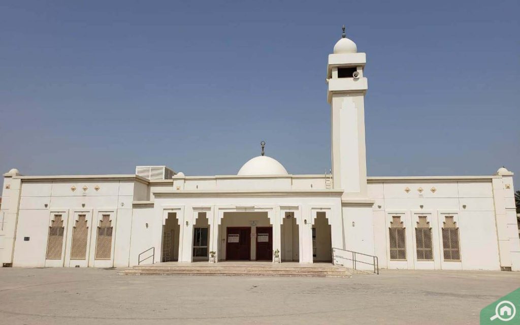 يمكن للسكان التوجه إلى مسجد إبراهيم بن الحارث للصلاة، وهو المسجد الوحيد في الفلج. تشمل المساجد الأخرى القريبة كل من مسجد أحمد بن حنبل ومسجد مالك بن أنس ومسجد الإمام الذهبي الواقعة على بعد من 5 إلى 8 دقائق بالسيارة. يعد مسجد الملك فيصل أحد أكبر المساجد في الشارقة، ويمكن الوصول إليه في غضون 11 دقيقة بالسيارة من الفلج، يمكن أن تستوعب قاعات الصلاة في المسجد ما يصل إلى 17,000 مصلٍ.