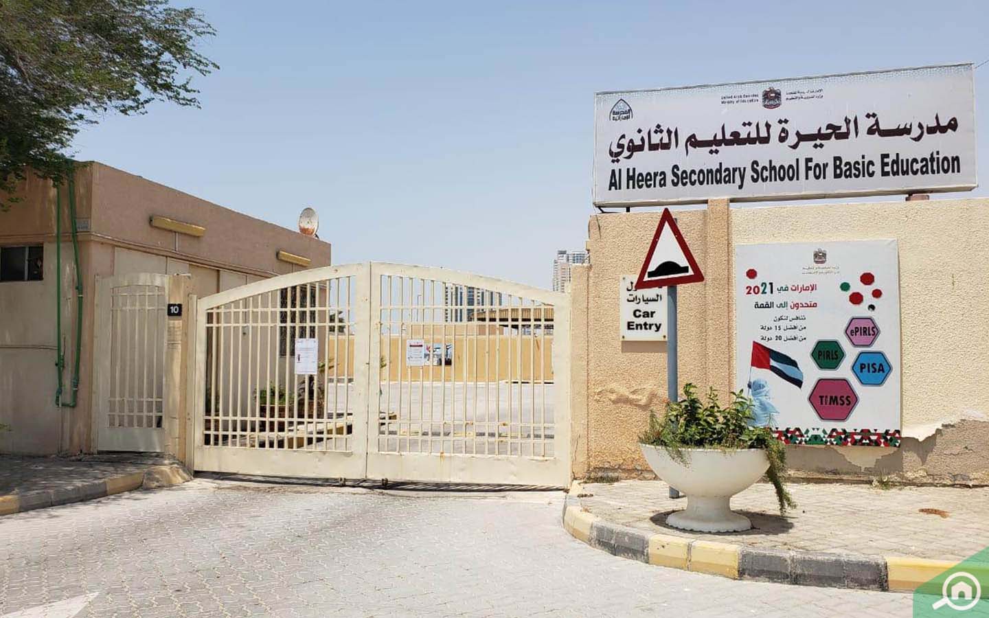 تقع مدرسة الحيرة للتعليم الثانوي بالقرب من المجمع وتوفر قسم خاص لمرحلة الحضانة، أما بالنسبة للمراحل التعليمية ما قبل المدرسة، فيمكن لأولياء الأمور اختيار حضانة الخطوة لتسجيل أطفالهم. هذا وتقع منطقة العزرة شرق مجمع الفلل، وتضم مجموعة مميزة من أفضل المدارس في الشارقة، وتشمل مدرسة الدوحة ومدرسة الشارقة العامة ومدرسة الرسالة الدولية للعلوم. تعتمد مدرسة الخليج العالمية ومدرسة الدوحة المنهاج الأمريكي من روضة الأطفال 1 إلى الصف 12، بينما تعتمد مدرسة الشارقة العامة المنهاج البريطاني.