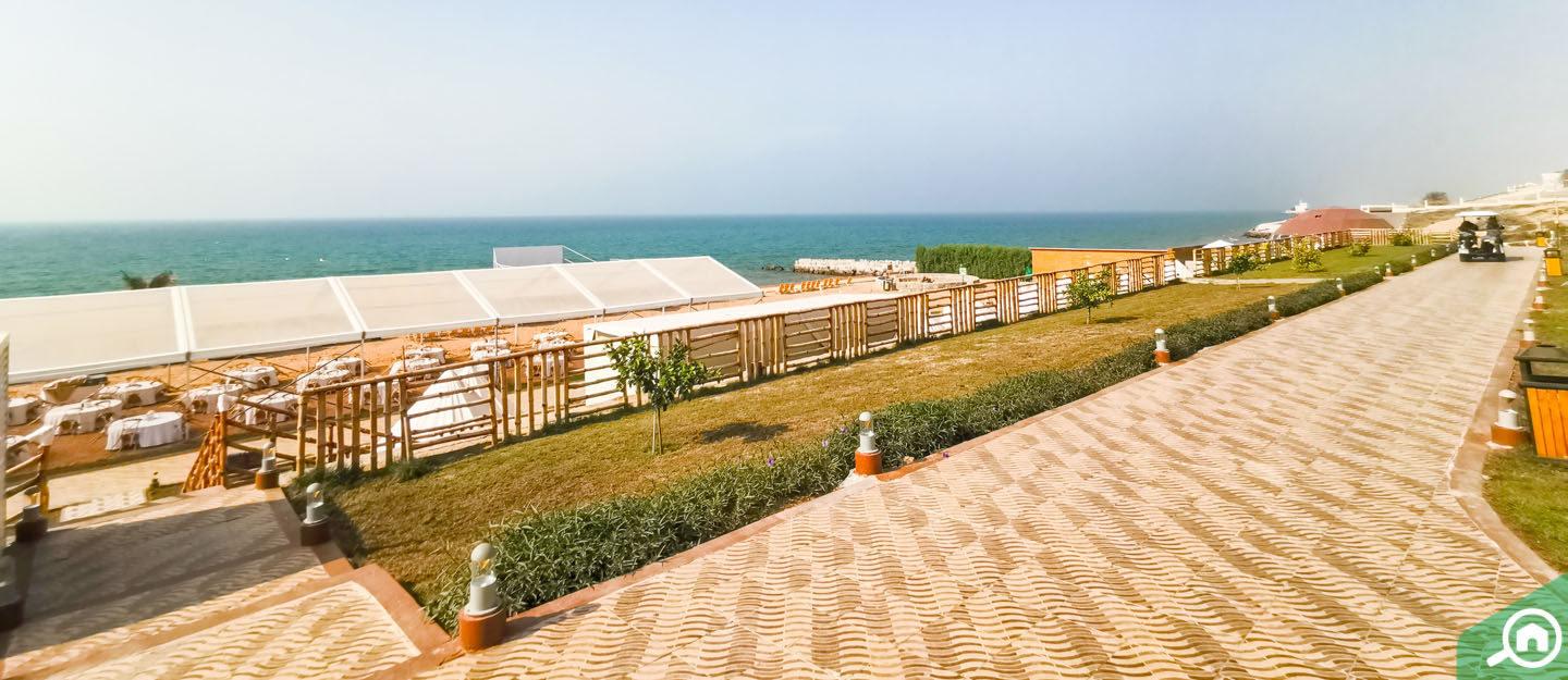 يذكر من الشواطئ العامة الشهيرة القريبة من المنطقة كل من شاطئ الحمرا وشاطئ المعيريض، ويمكن الوصول إليهما خلال 17 إلى 20 دقيقة بالسيارة.