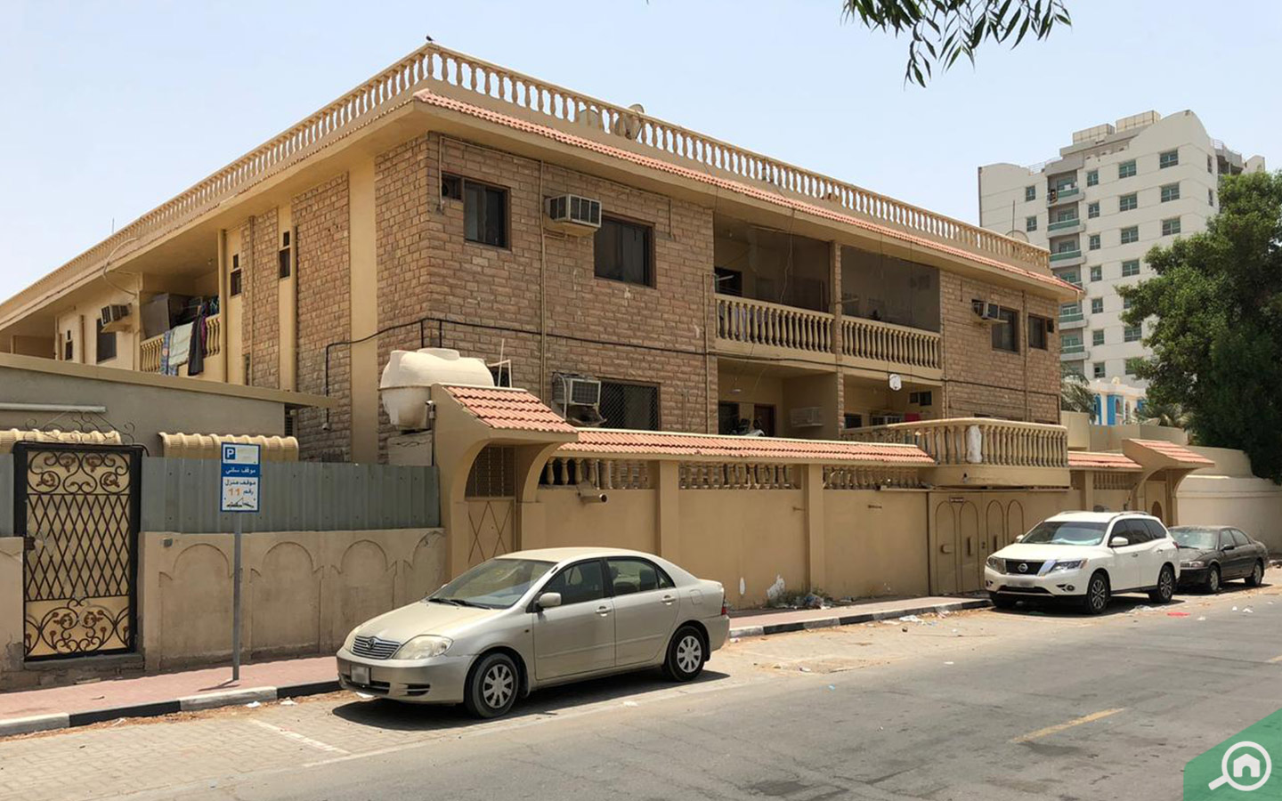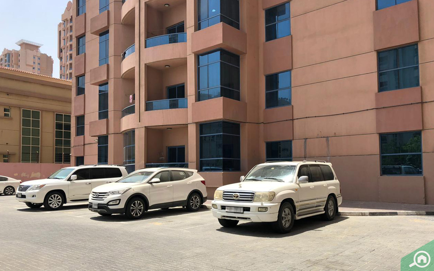 أما فيما يتعلق بمواقف السيارات، فإن المباني حديثة البناء تشمل مواقف سيارات للسكان في طوابقها الأرضية أو أمام المبنى السكني، بينما المباني ذات التصاميم والبناء القديم لا توفر مواقف سيارات، الأمر الذي يضطر السكان إلى صف سياراتهم على جانب الطريق أو استخدام مواقف سيارات مدفوعة الأجر، كما توفر جميع الفلل موقفاً أو اثنين لسكانها.