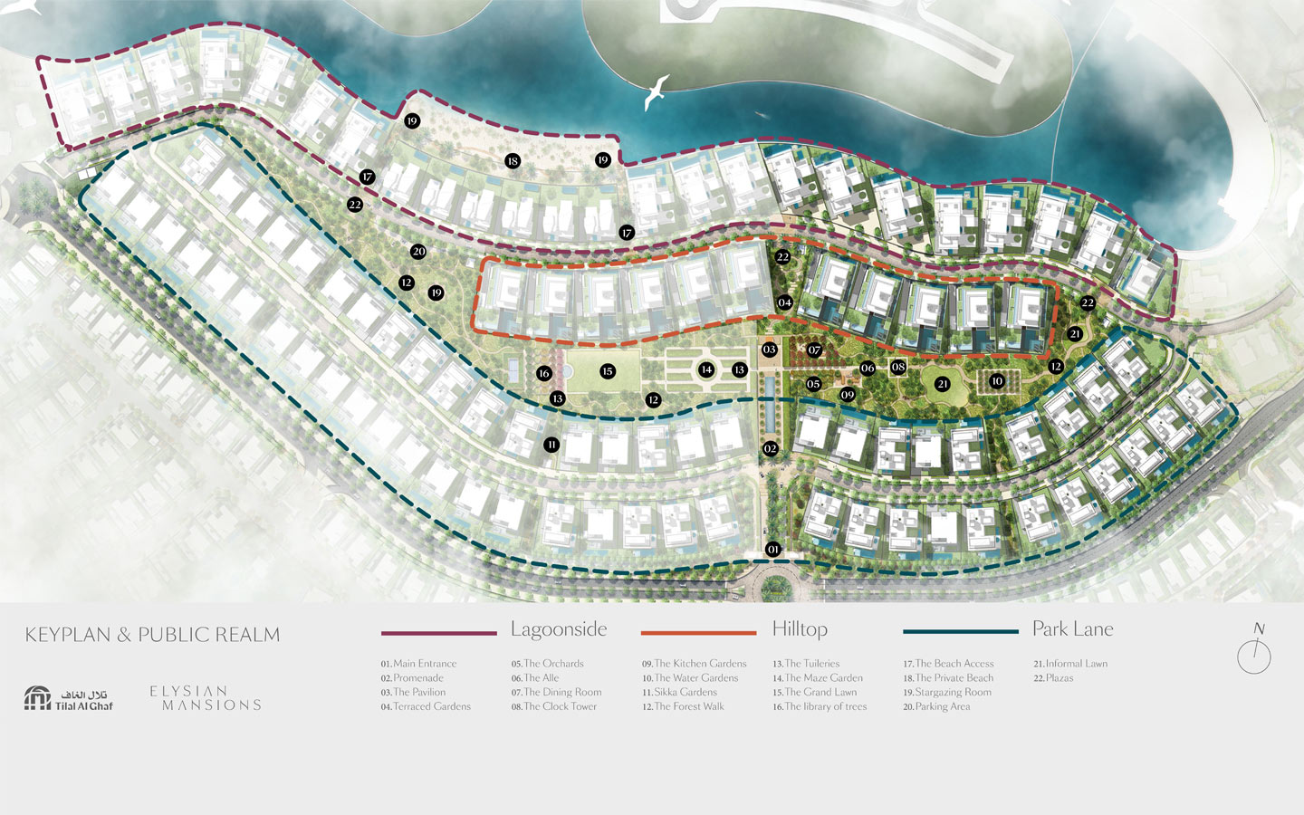 يضم هذا المشروع الراقي مجموعة مميزة من الفلل الفاخرة من فئة “لاغون سايد Lagoonside”، و”هيل توب Hill Top”، و”بارك لين Park Lane”، التي تتألف من 5 غرف وحتى 7 غرف.