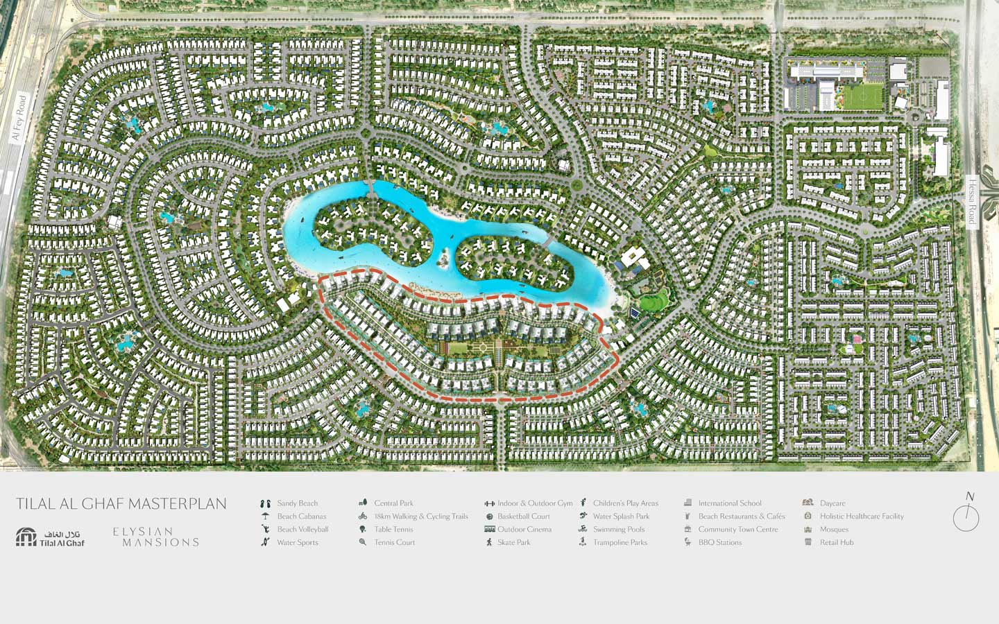 يقع المشروع ضمن منطقة “تلال الغاف” الواقعة في قلب دبي الجديدة، وتُحيط بها بحيرة رائعة وشواطئ رملية، بالإضافة إلى ضمها لتشكيلة من المرافق الاستثنائية؛ مثل هايف بارك الذي يقدم تجربة فريدة للزوار والمقيمين من خلال الاستلقاء تحت أشعة الشمس الدافئة والاستمتاع بالأنشطة المائية المتنوعة، كما تضم مرافق لياقة بدنية متعددة، مثل؛ ملاعب التنس، وملاعب كرة السلة، والنوادي الرياضية الداخلية والخارجية، وبرك السباحة، والمسارات المرصوفة.