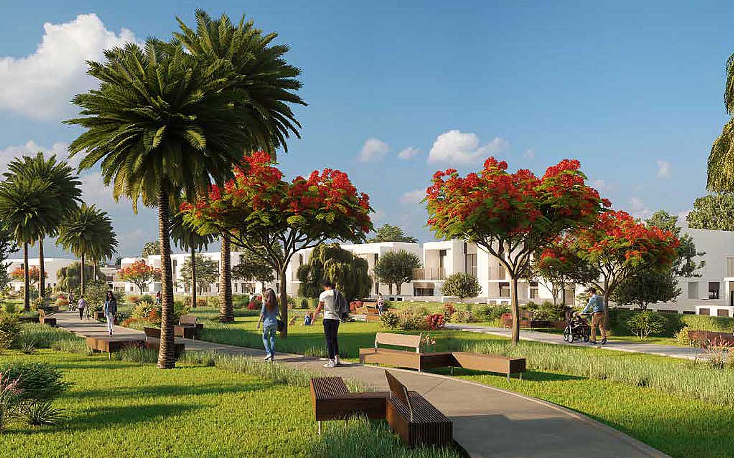 تتوفر في متناول يد سكان المشروع السكني العصري الكثير من المرافق الترفيهية الخارجية، ومنها المساحات الطبيعية الخضراء والمسارات المخصصة للهرولة والمشي.
