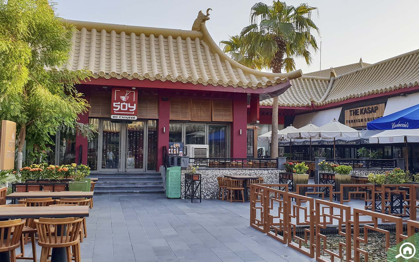 بالحديث عن المقاهي المتوفرة في المنطقة فإنها تتضمن كوستا كوفي ولاونج كافيه وأرتيسان كافيه وكاريبو كوفي وغيرها، بالإضافة إلى عدد من مطاعم الوجبات السريعة، وهي كنتاكي وماري براون وغيرها.