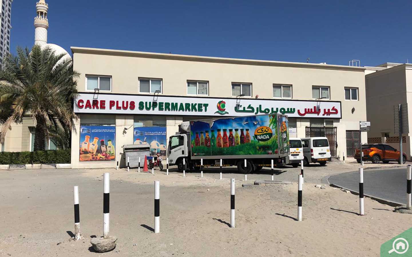 يمكن للقاطنين في المجمع السكني التبضّع وشراء الحاجيات من محلات السوبر ماركت الواقعة في المناطق القريبة؛ إذ يقع على بعد 2 إلى 7 دقائق بالسيارة كل من: صن آند مون ميني مارت، سوبر ماركت كير بلس، سوبر ماركت كاري فود، بقالة مدينة الخير، سوبر ماركت المايا، سوبر ماركت الريان وسوبر ماركت جراديوس.