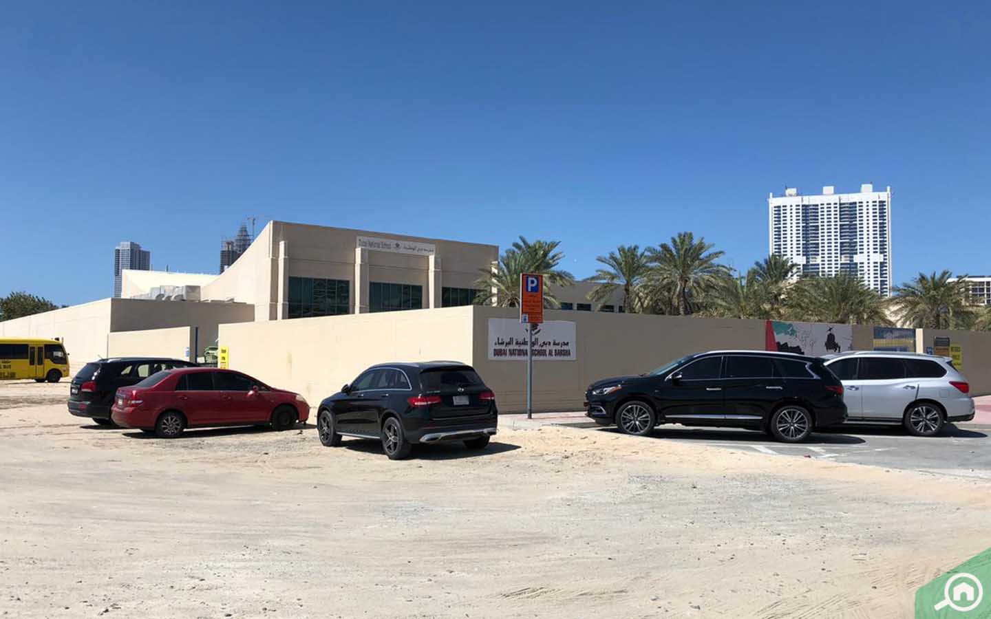 تبعد مدرسة دبي الوطنية البرشاء دقائق معدودة بالسيارة، وهي من المدارس المختلطة التي تطبّق المنهاج الأمريكي لطلابها من الحضانة حتى الصف 12.