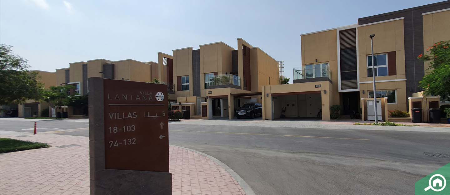 تقتصر العقارات السكنية في فيلا لانتانا على فلل مستقلة وفلل مستقلة بشكل جزئي تتكون من طابقين، وتشتمل على 3 غرف و4 غرف و5 غرف، كما تتوفر بما يقارب 17 تصميم معماري فريد من نوعه، وتحتوي كل منها على غرفة معيشة واسعة، مطبخ مجهز بالكامل، غرفة للخادمة، غرفة للتخزين، مجلس للعائلة، غرف رئيسية بحمامات ملحقة وخزائن حائط، بالإضافة إلى شرفة وغرفة منفصلة للضيوف حديقة خلفية وبركة سباحة.