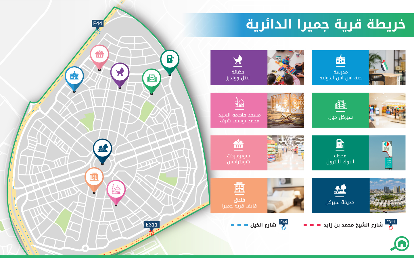 جاهز تعتبر قرية جميرا الدائرية من أكثر المناطق المناسبة للعائلات، حيث حرصت شركة نخيل العقارية على تصميم كافة تفاصيلها بدقة متناهية، حيث تقع في قلب دبي الجديدة وسط مساحات خضراء ممتدة ومجموعة واسعة من الخدمات والمرافق، الأمر الذي جعلها وجهة لا يستهان بها على صعيد الاستثمار العقاري أو للراغبين بالاستقرار وسط بيئة حيوية وحضرية.