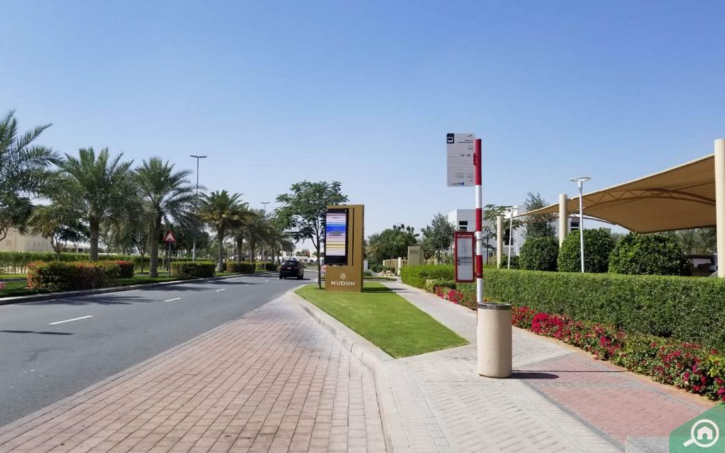 من يعتمد في تنقلاته على مواصلات النقل العام يمكنه العثور على موقفي باص دبي قرب مدن – مركز السلام التجاري، أما أقرب محطة مترو فهي محطة مترو مول الإمارات التي يمكن الوصول إليها بركوب الباص رقم F32. فيما يتعلق بسيارات الأجرة، فمن الصعب العثور عليها في المنطقة الأمر الذي يحتّم على السكان طلب سيارة خاصة عبر تطبيقات الهاتف الذكي.
