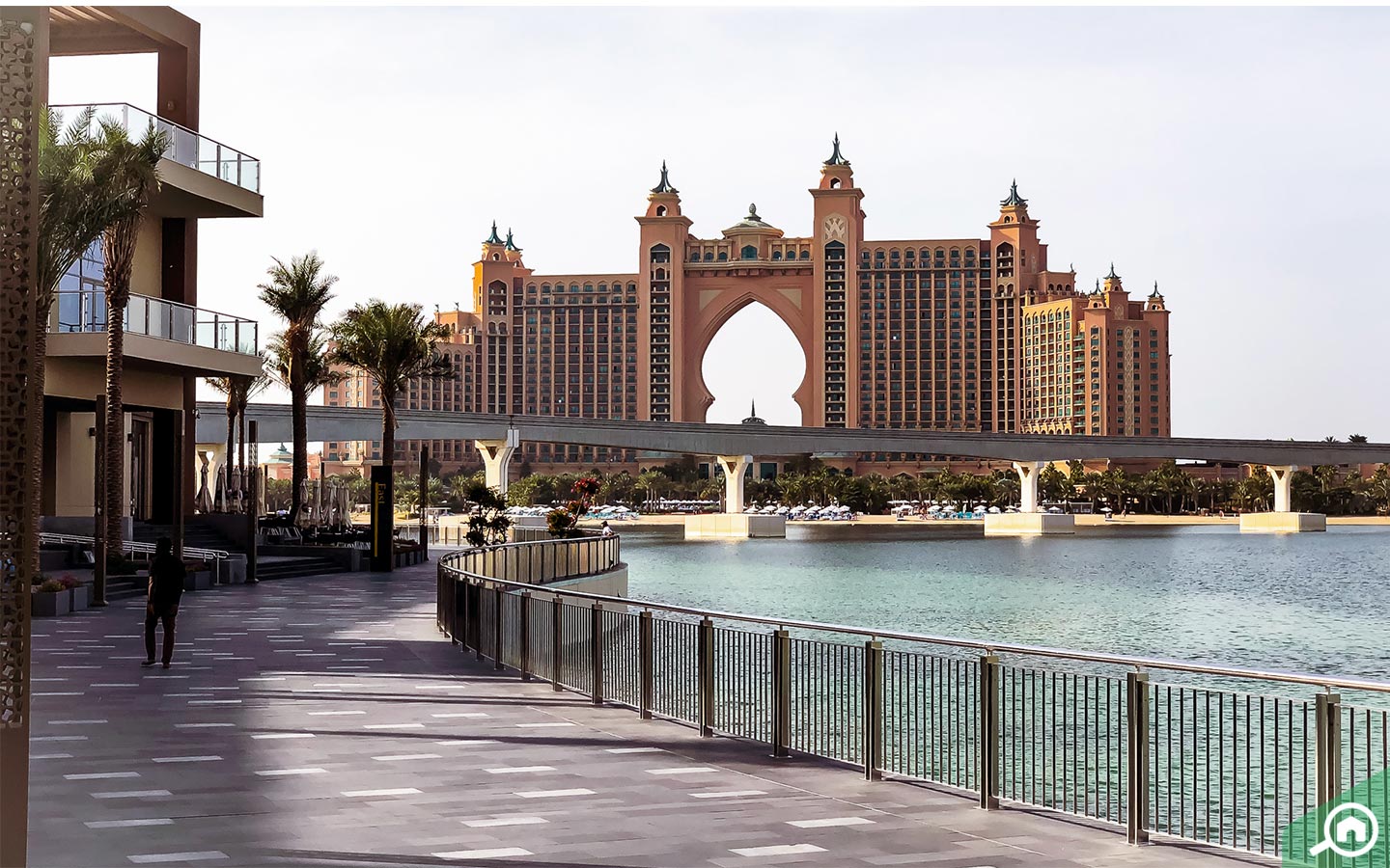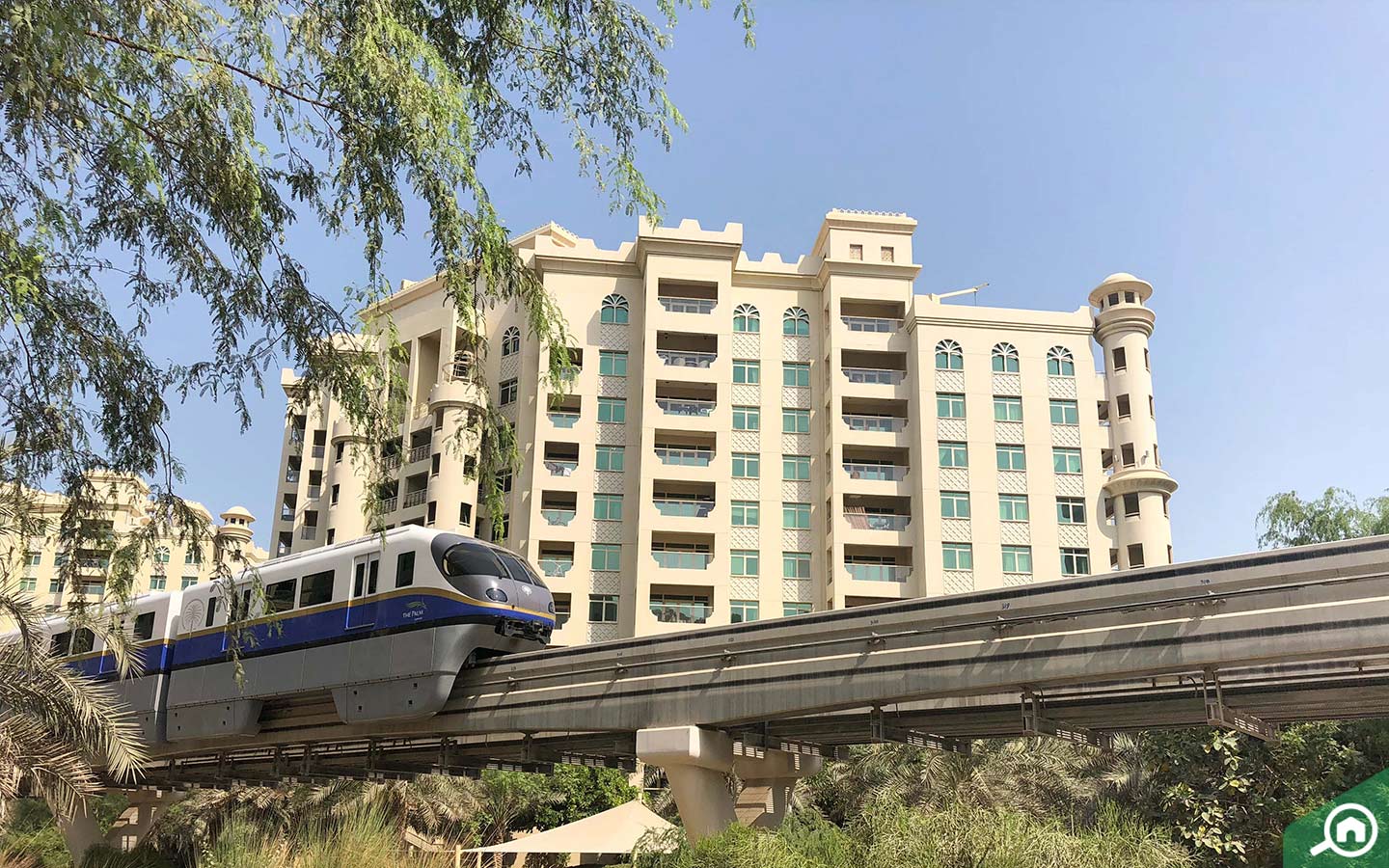 تزخر الجزيرة بالمنتجعات المصنفة 5 نجوم والتي يسهل الوصول إليها في غضون دقائق قليلة من المجمع السكني، وتشمل سوفيتيل بالم دبي ريزورت أند سبا وفيرمونت النخلة المعروف أيضاً باسم فيرمونت ذا بالم وغيرها العديد.