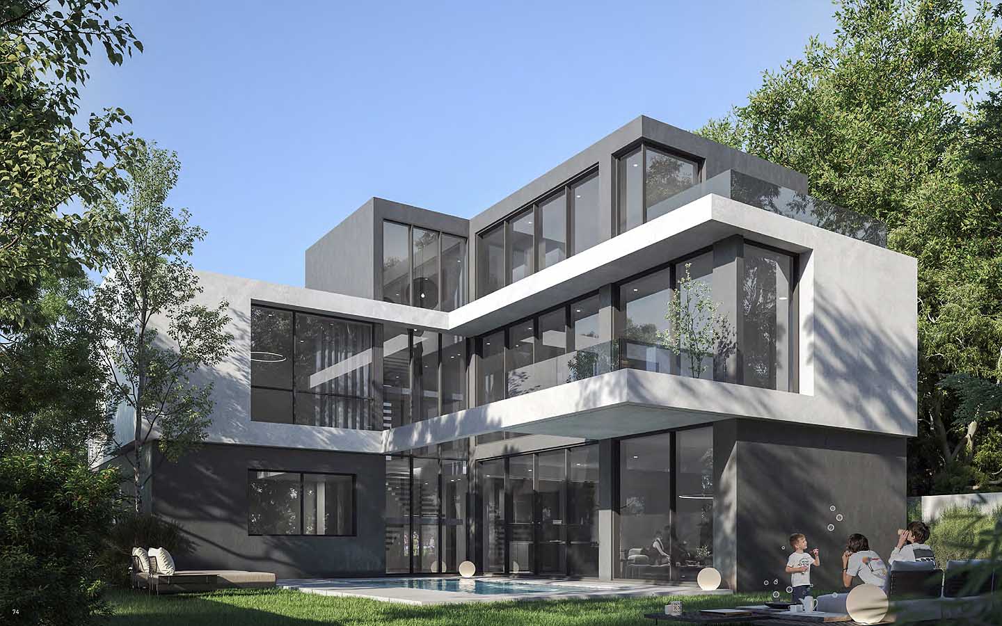 تتضمن عقارات المشروع خصائص المنزل الذكي التي تسمح لك بضبط المنزل وفقاً لاهتماماتك الخاصة، أما بالنسبة للتصميم الداخلي، فإنه يتميز بالطراز العصري المستوحى من عناصر الطبيعة، وبالحديث عن المساحات فإنها تبدأ من 3,160 وتصل إلى 15,089 قدم مربع. بالانتقال إلى ما تُغطيه مساحة العقار، فإنه يشتمل على غرف رئيسية بحمامات ملحقة وغرف معيشة رحبة ونوافذ تمتد من الأرضية حتى السقف ومساحات فارغة، بالإضافة إلى غرفة للخادمة وحدائق خضراء خاصة وشرفات وتراسات ومواقف مغلقة للسيارات.