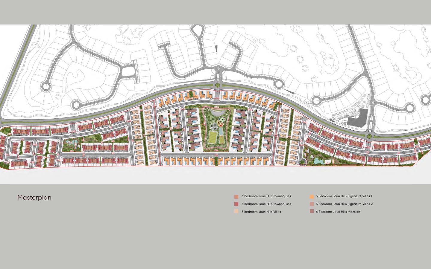 ننتقل الآن للحديث بشكل مخصص عن المخطط الرئيسي لمشروع جوري هيلز، الذي يحتضن باقة من العقارات الفريدة التي تتنوع ما بين منازل التاون هاوس والفلل الرحبة والقصور الفارهة المتصلة بالمساحات الطبيعية الخضراء الفسيحة. نذكر لك فيما يأتي أبرز المزايا المتوفرة في المشروع: