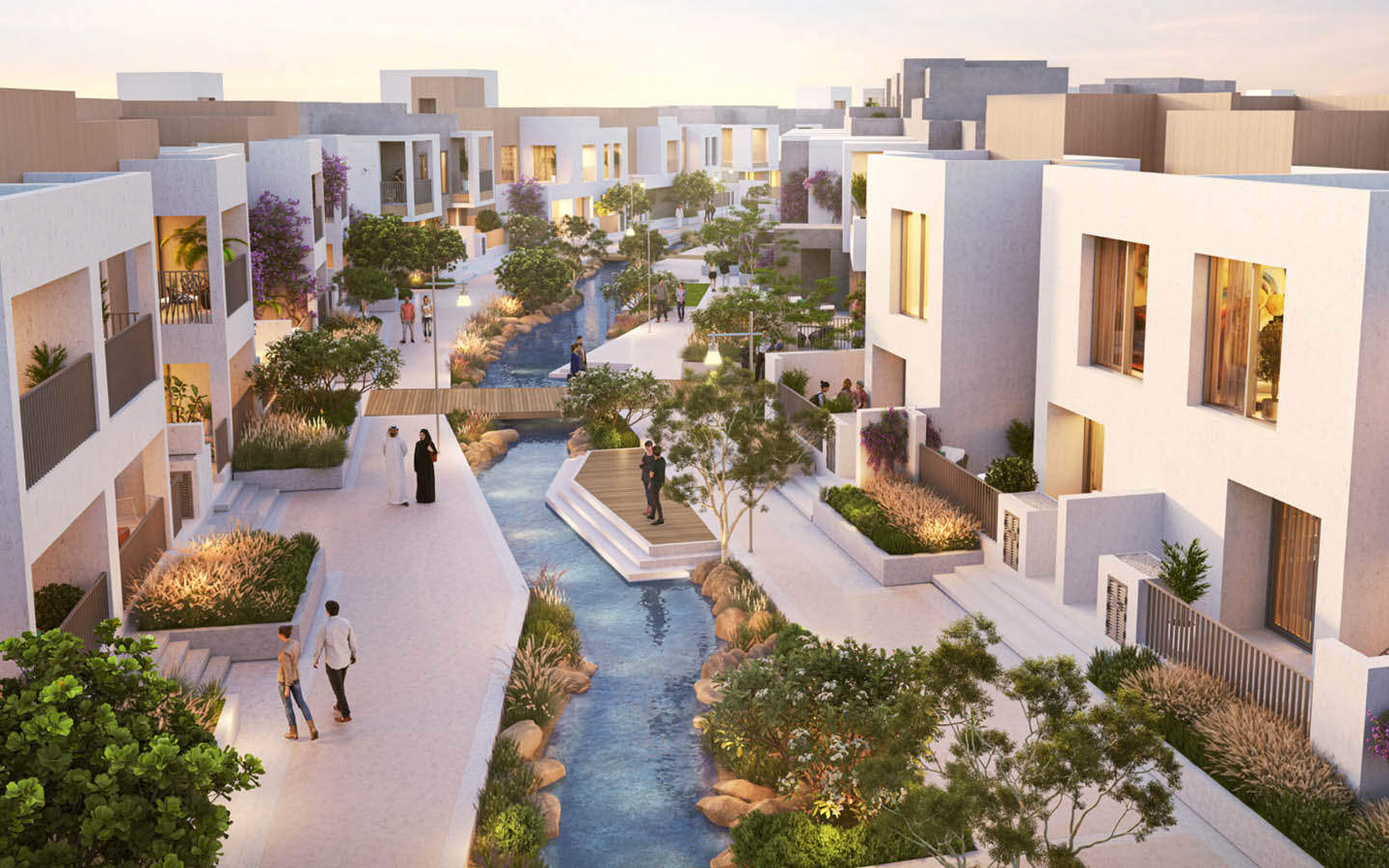 The residential community features lush green spaces and several recreational facilities, including a swimming pool, children's play area and clubhouse. Other high-end facilities include Wadi River, a wet splash pad and a town centre.