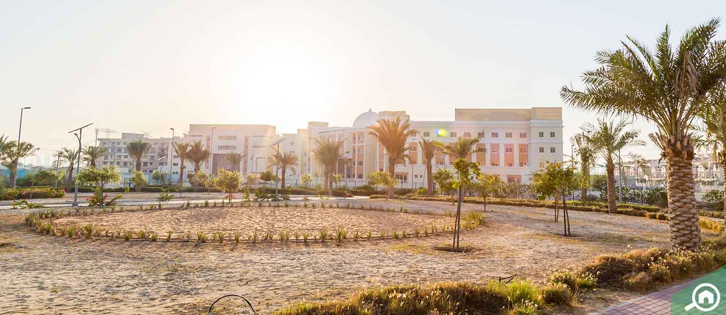 JSS International School follows the CBSE curriculum. Another popular school, Global Indian International School Dubai, is located in the vicinity. It incorporates a dual curriculum system. For basic education, CBSE curriculum is offered while secondary level students can opt for IBDP (International Baccalaureate Diploma Program).