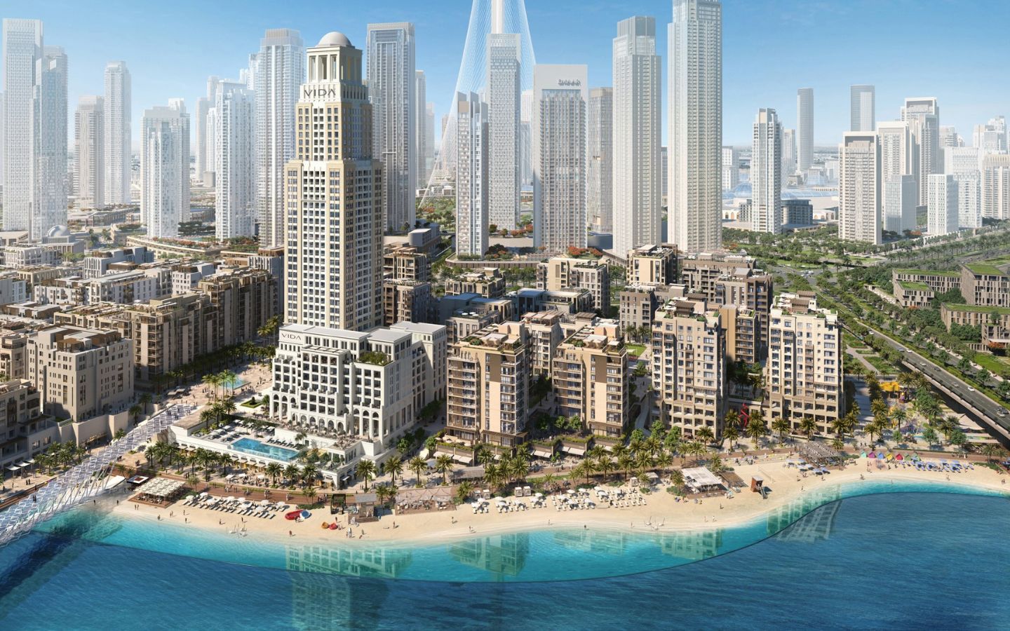 The Island District is home to several developed and off-plan projects, while approximately 700,000 sq. m. is dedicated to lush parks and open green spaces. Creek Island has two prominent 5-star hotels; Address Harbour Point and Vida Residences and many residential projects such as Creek Residences and Palace Residences. Once fully developed, it will be home to up to 200,000 residents, offering a vibrant and self-sustained community with seamless connectivity and a lifestyle centred around waterfront living.