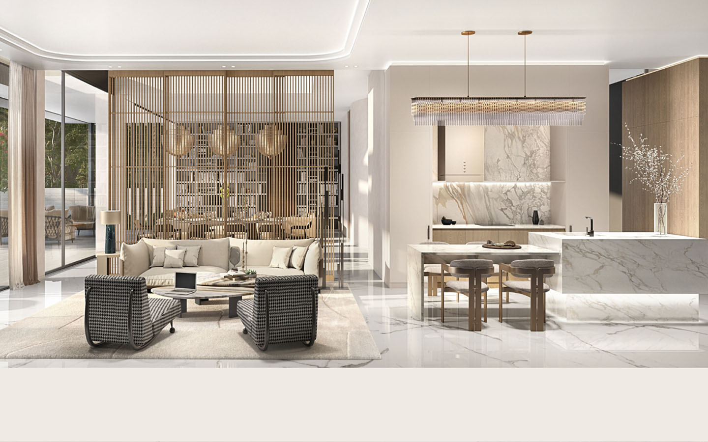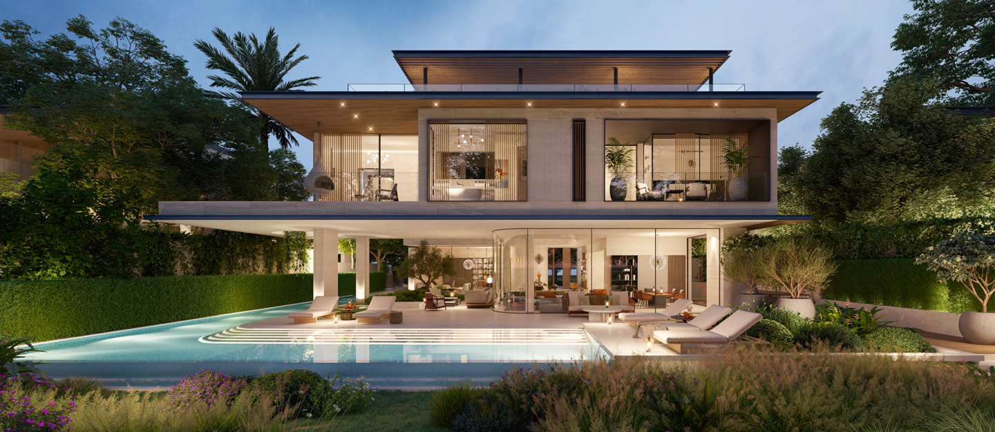 Potential buyers can choose a mansion based on its location, either adjacent to the Tilal Al Ghaf lagoon with direct access to a private beach or amidst the private gardens. Owners will be able to choose options for the rooftop and the basement floor. Some residential units have a Sky Suite option available for the rooftop and a multipurpose option for the basement floor.