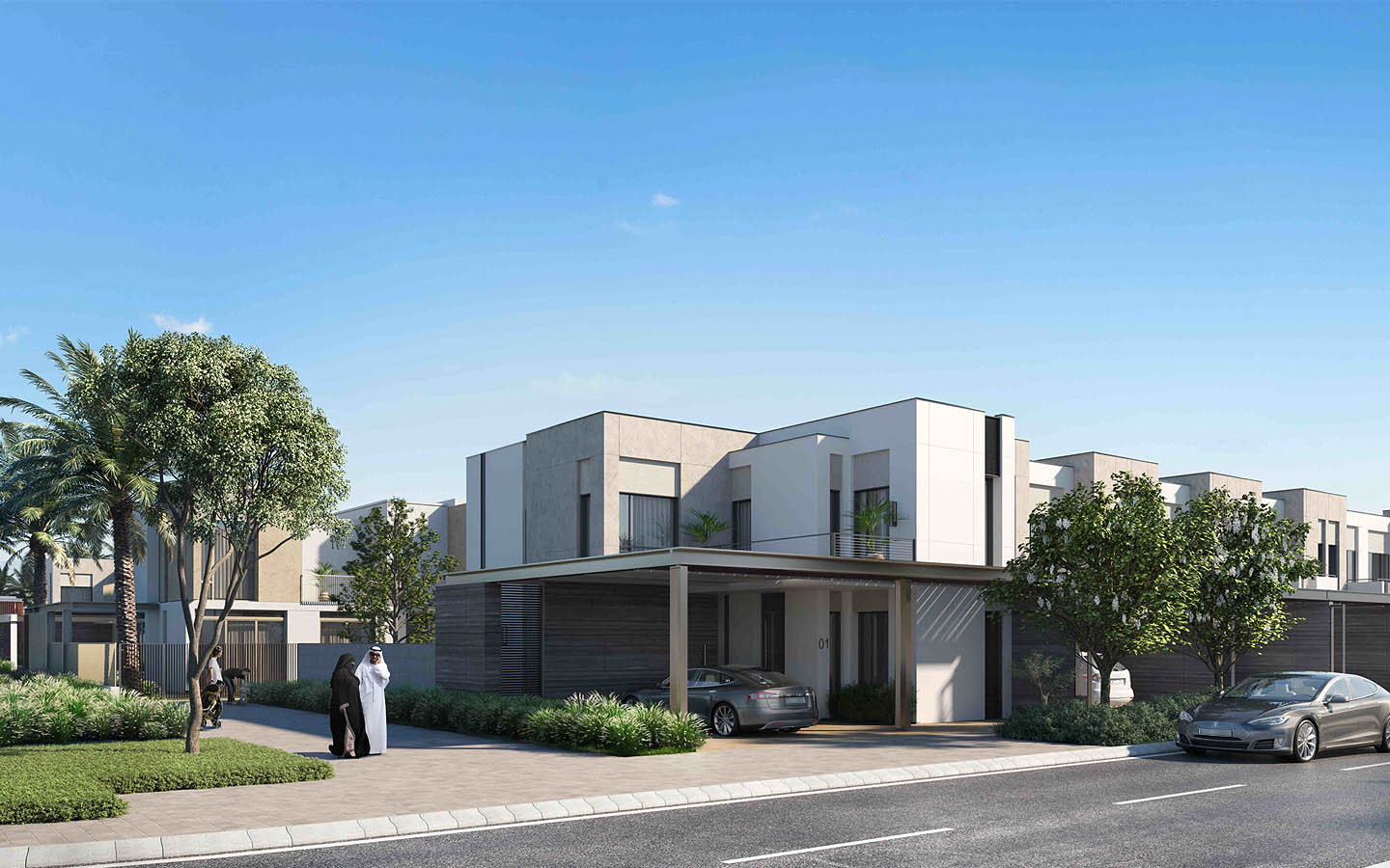Type 1 category has contemporary refined townhouses. These houses come in elegant finishes and neutral colours. The Type 2 category has stylish cubic townhouses. These residential units have a cubic design with crisp white frontage contrasting with darker tones. Type 3 category includes modern sophisticated townhouses. These units are a good choice for those who prefer white and grey colours and large windows.