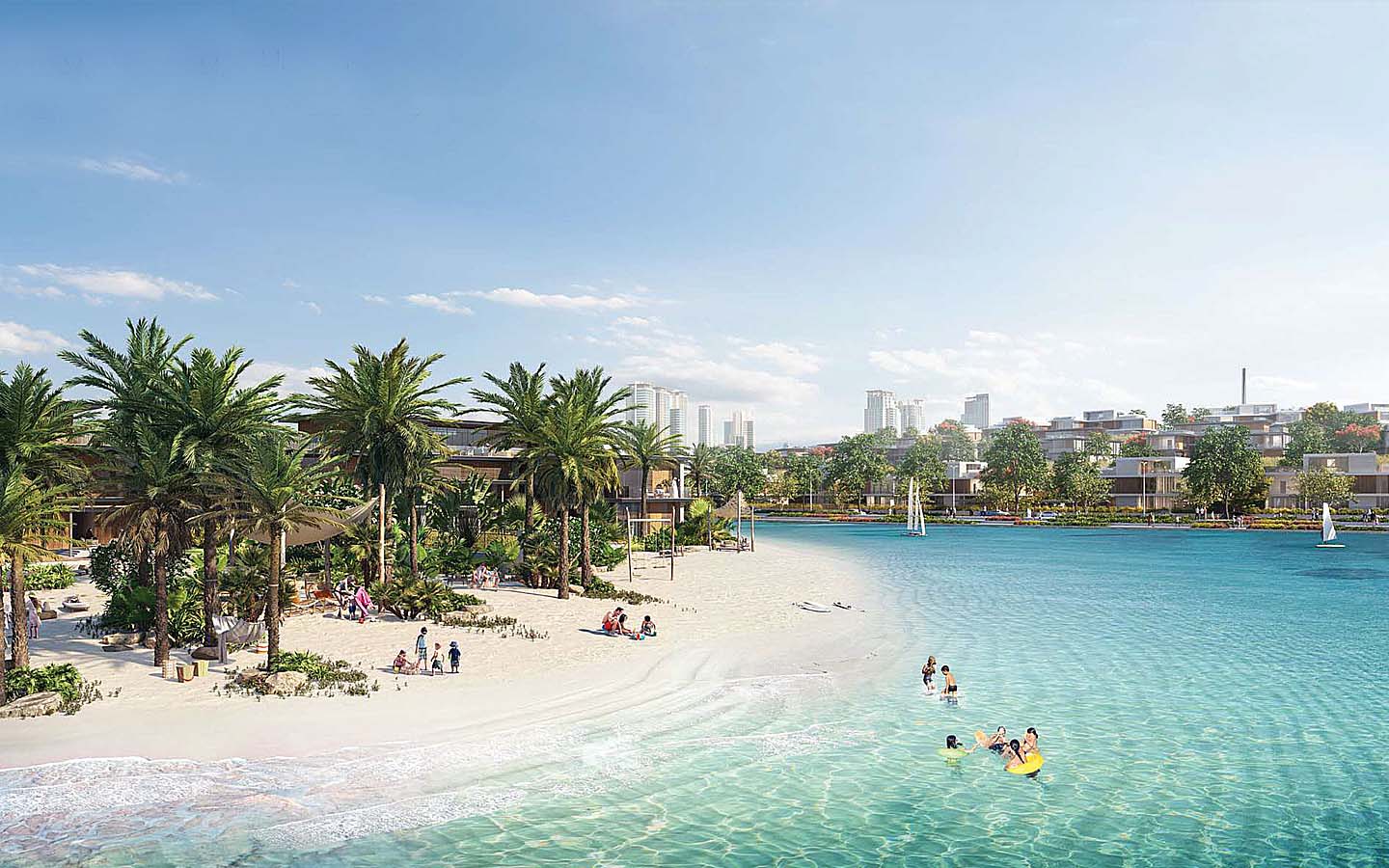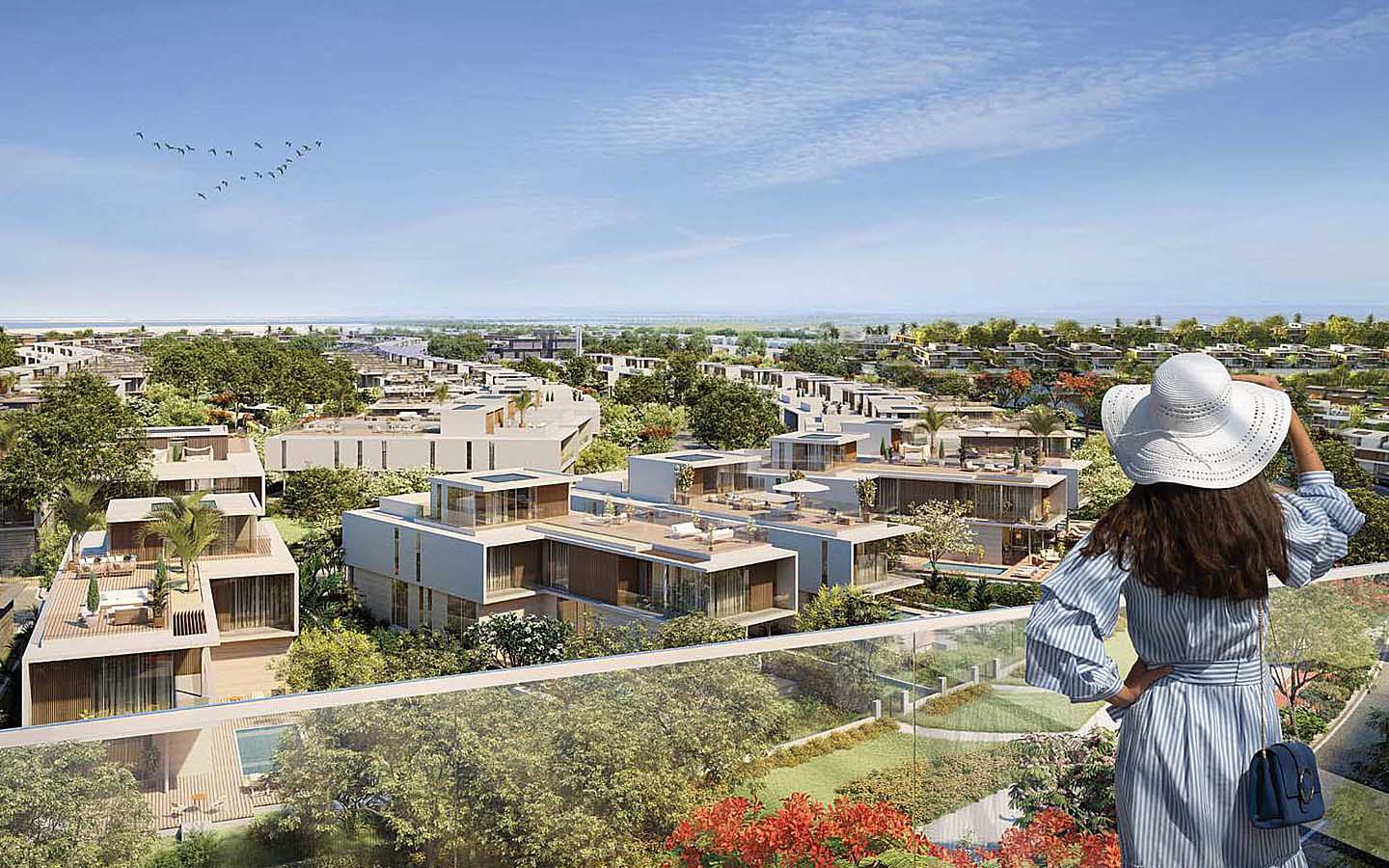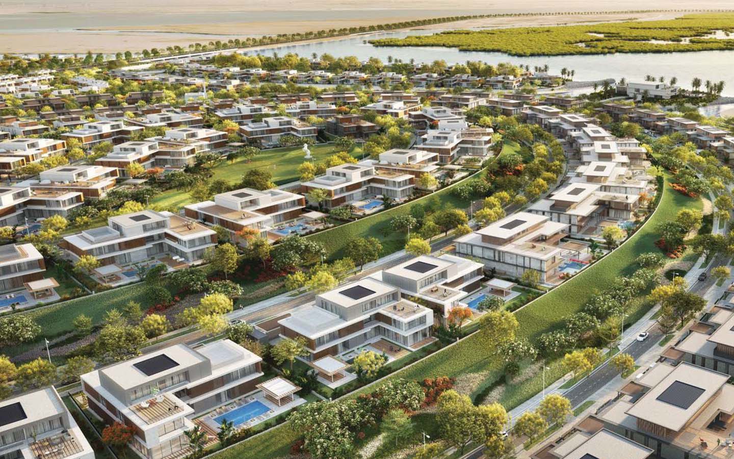 Apart from high-end residences, the community will also feature a range of communal facilities and amenities. These include a private school, healthcare facilities, a mosque, retail spaces and community centres. The landscaped development has no shortage of lush green spaces also. There will be a community park, a sports court, cycling and jogging tracks, a landscaped hill and a neighbourhood park. Other facilities include beach access, dining options and clubhouses.