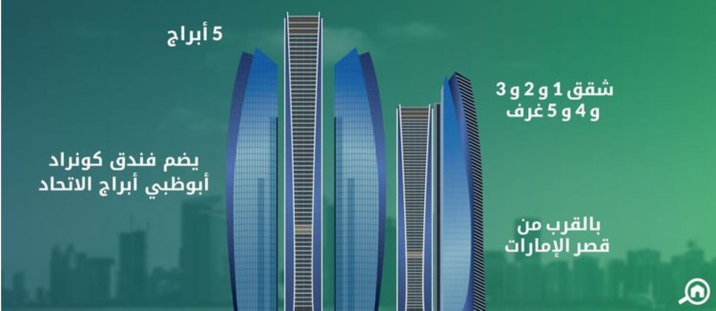بمساحته البالغة 5 مليون قدم مربع، يتألف المشروع من فندق حائز على تصنيف خمس نجوم وبرج تجاري وثلاثة أبراج سكنية. يحمل الفندق اسم كونراد أبوظبي أبراج الإتحاد ويضم 382 غرفة و199 شقة مخدمة، ويذكر أنه طوله يصل إلى 280 متراً.