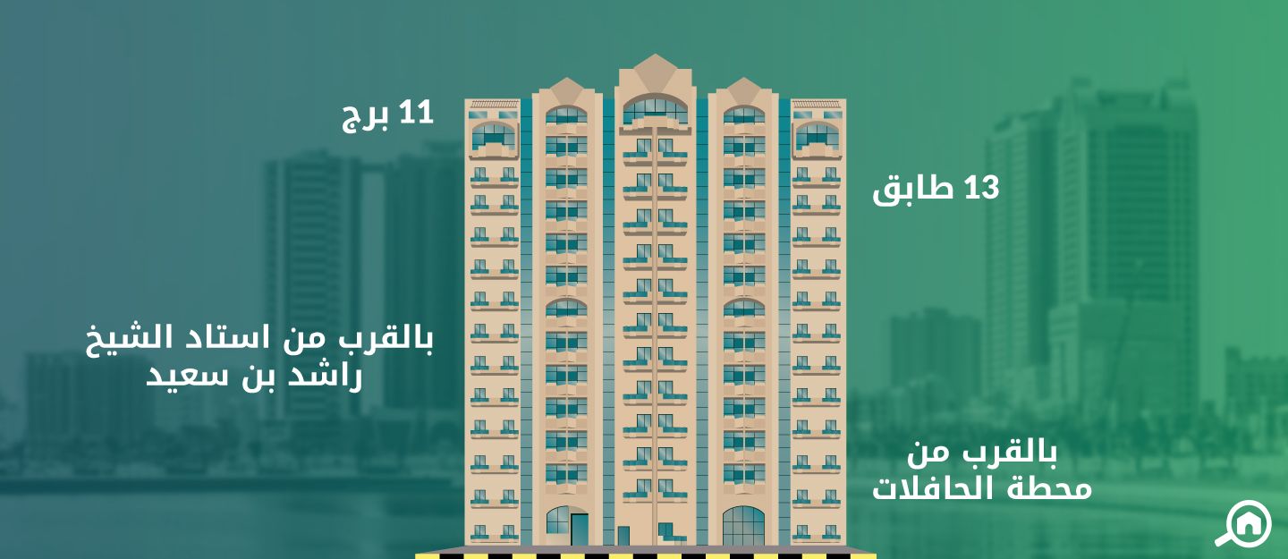 تبعد هذه الأبراج والمباني مسافة 5 دقائق فقط عن مشروع أبراج الراشدية السكني.