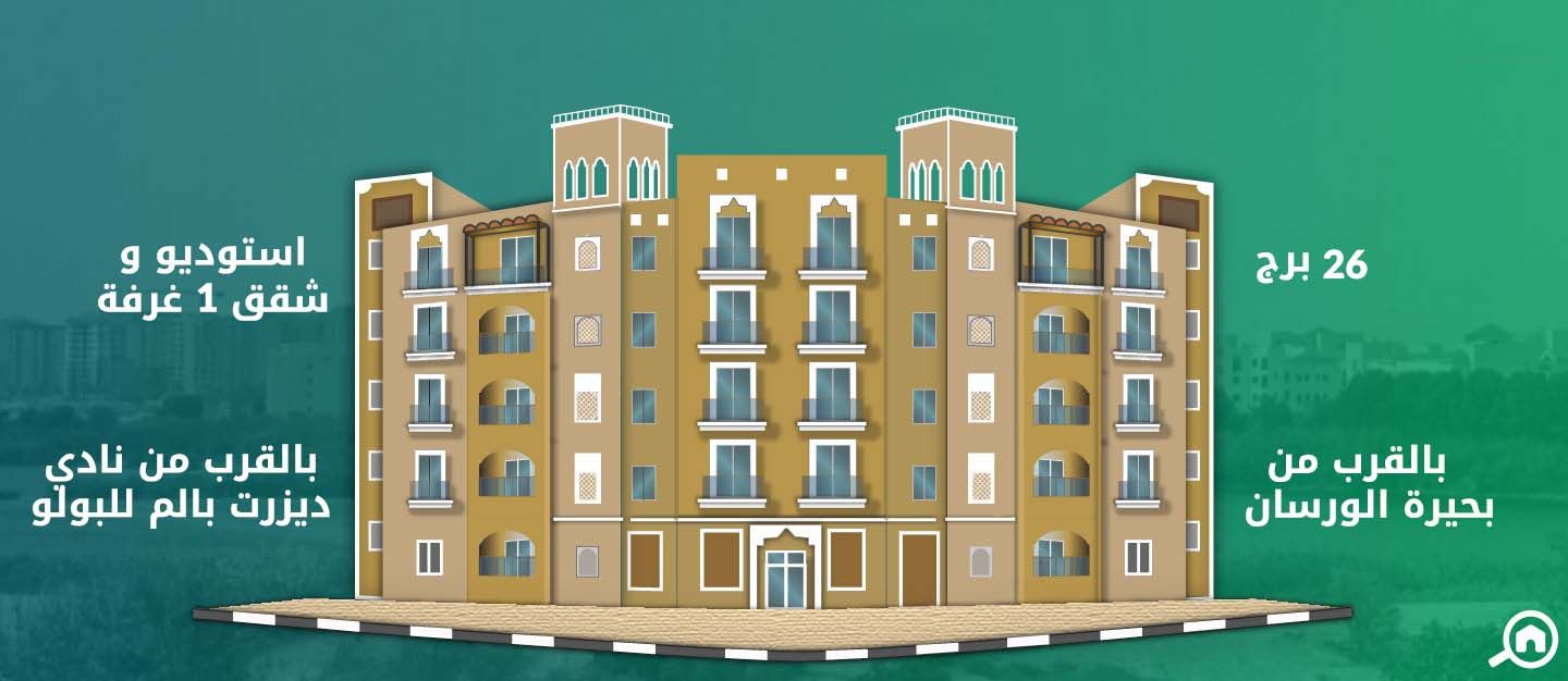 تتراوح مساحة استوديو في الحي الاماراتي بين 445 و 500 قدم مربع، وتضم غرفة نوم وغرفة معيشة ومطبخ وحمام وشرفة وخزائن مدمجة ومساحة مخصصة كمكتب للقيام بالأعمال داخل المنزل.