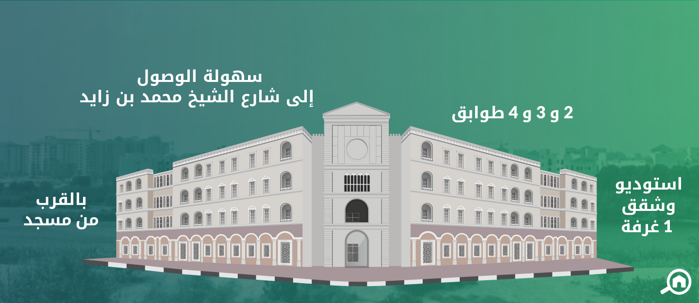 تتفرع الوحدات السكنية في الحي إلى استوديو وشقق غرفة وصالة.