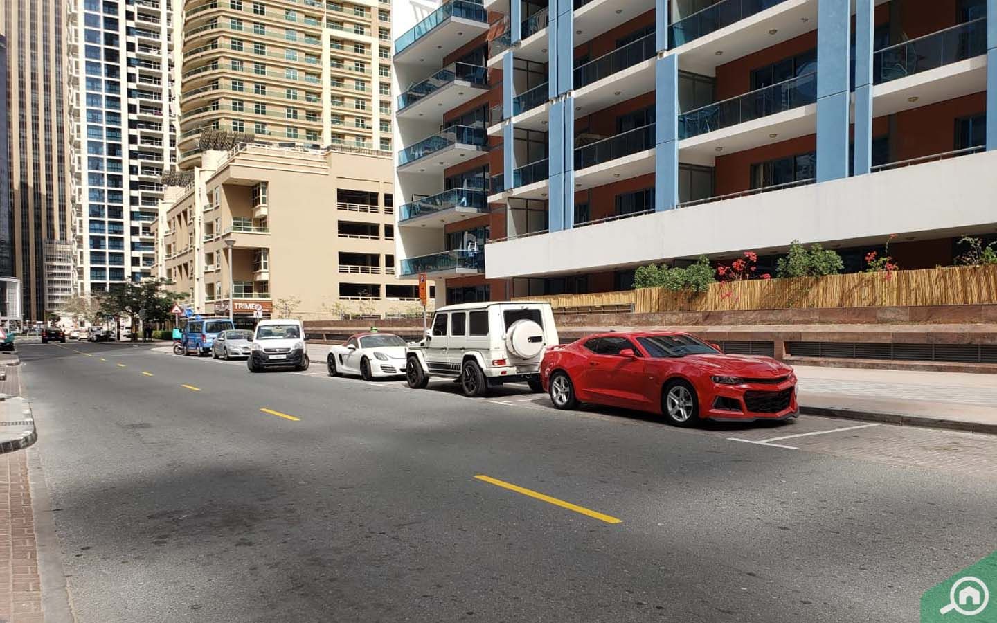 تتوفر مواقف سيارات مخصصة للسكان، كما يمكن الاستفادة من مواقف السيارات بالأجرة القريبة من البرج.