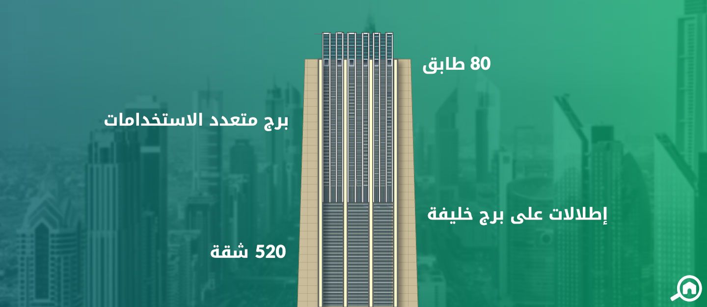 يتكون البرج من 80 طابقاً بطول 328 متراً (1,076 قدم)، ويشتمل على ما مجموعه 520 وحدة سكنية تتنوع بين شقق غرفة وصالة وغرفتين وصالة وثلاث غرف وصالة وعدد قليل من وحدات البنتهاوس. إضافة إلى ذلك، يضم البرج محلات ومكاتب تتوفر بمساحات وأسعار وإيجارات مختلفة. يذكر أن المكاتب تتنوع بين مكاتب مجهزة بالكامل ومكاتب مجهزة وأخرى بتشطيبات أساسية.