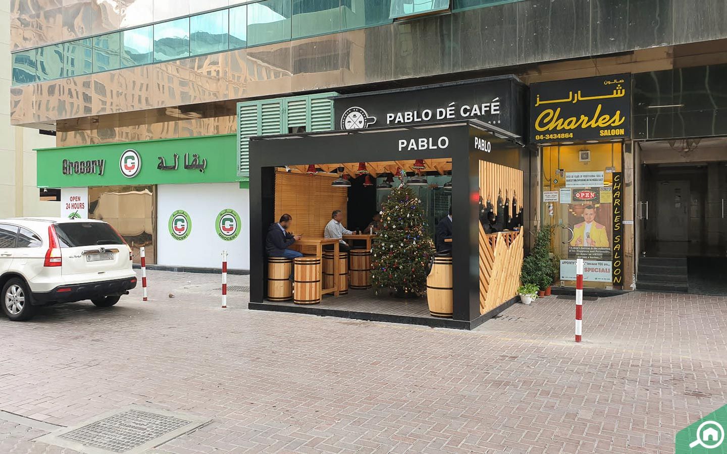 يمكن للسكان شراء البقالة والحاجات الأساسية من محلات السوبر ماركت القريبة من المبنى، منها: