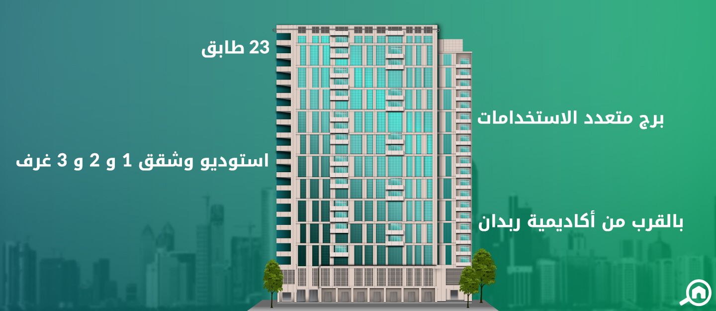 يقع البرج في منطقة استراتيجية للغاية تسهل على السكان الوصول إلى مختلف الأماكن الترفيهية والمرافق الخدمية، ويتضمن في الطابق الأرضي محلات تجارية مختلفة وفرع لسوبر ماركت سبينس، بالإضافة إلى توفر منطقة لعب مخصصة للأطفال.