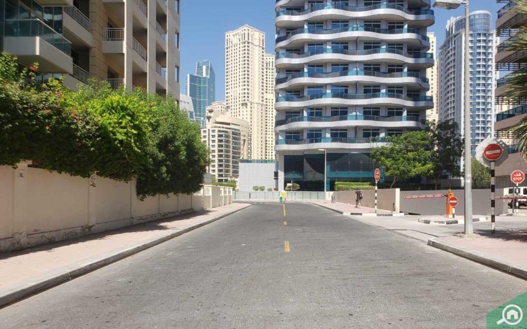 تقع العديد من المباني والأبراج السكنية على بعد مسافة قصيرة، وتشمل كل من مارينا بروميناد وبرج مارينا بيناكل وتاج الامارات وبرج ايكون 2.