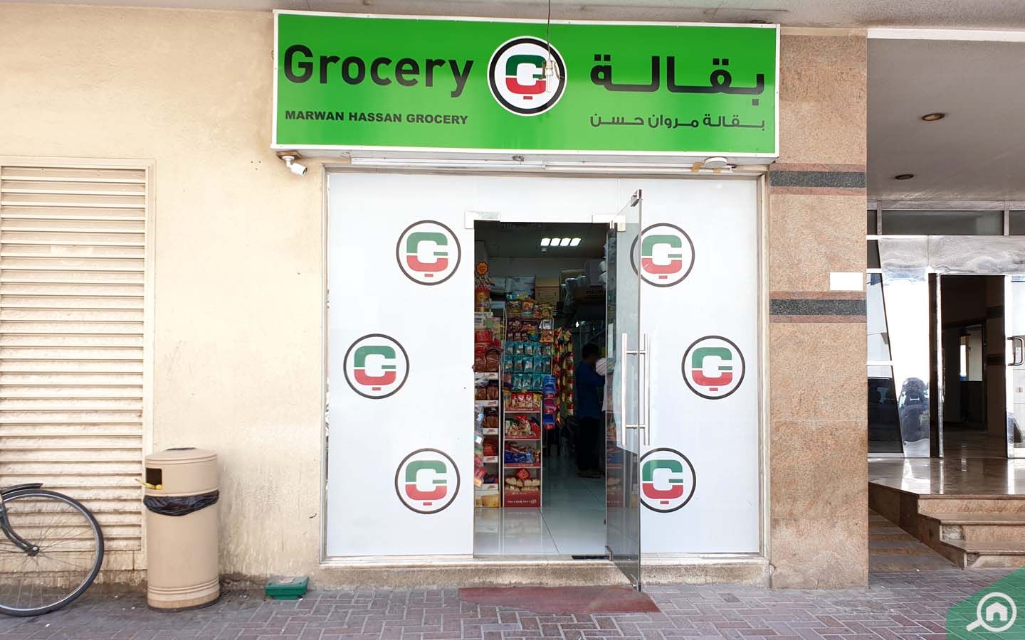 تقع بقالة مروان حسن في الطابق الأرضي