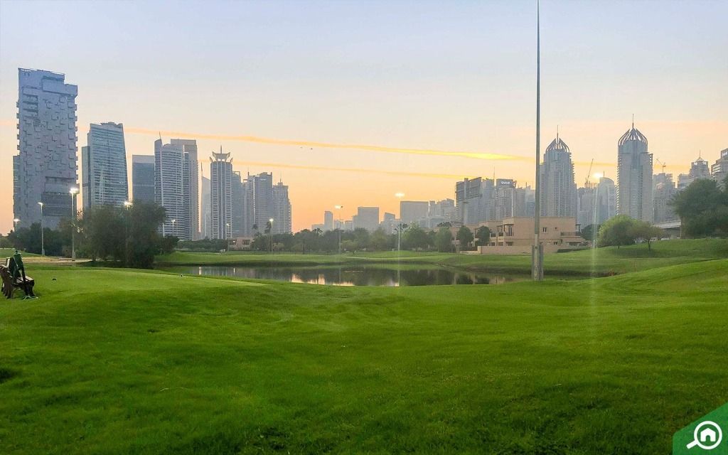 يعد نادي الإمارات للغولف أحد المعالم الرئيسية في المنطقة، ويقع على بعد 7 دقائق بالسيارة من المبنى، ويقع فندق العنوان مونتجمري الذي يضم ملعباً للغولف أيضاً بالقرب من برج تاج الامارات. يقع مضمار جبل علي على بعد أقل من 15 دقيقة بالسيارة عن موقع تاج الامارات، وهو المكان الأنسب لمحبي رياضة الفروسية.