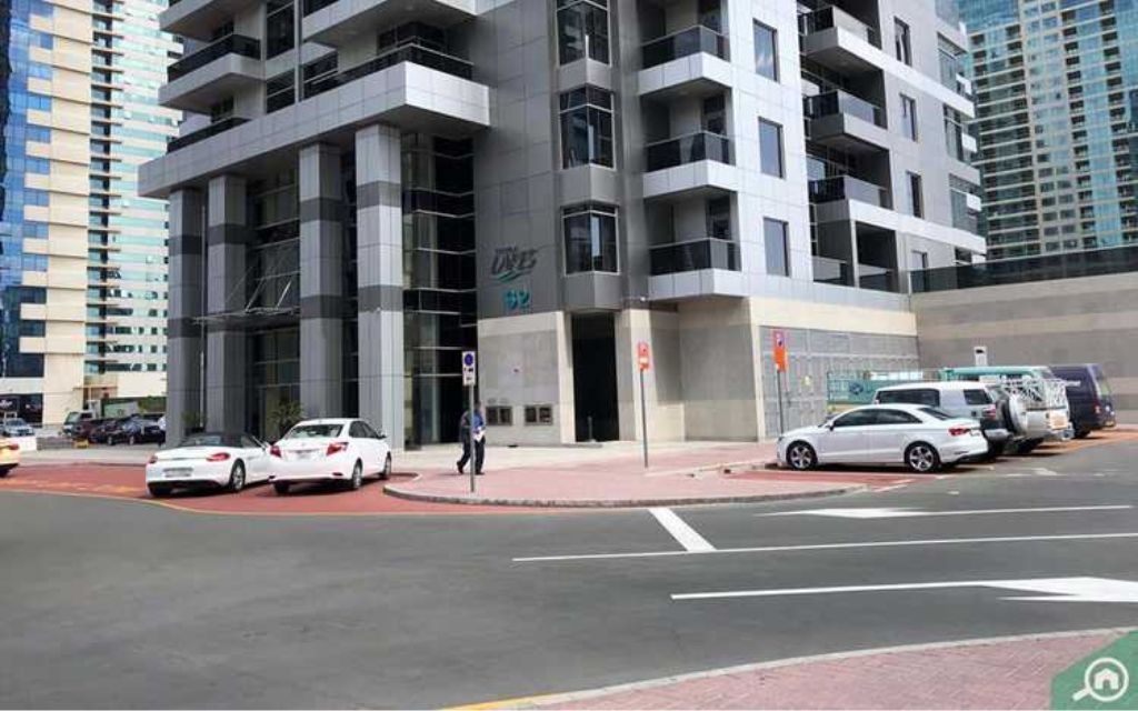 يشتمل البرج على موقف سيارات للسكان، وتتوفر مساحات لصف سيارات الزوار في الشارع الخارجي.