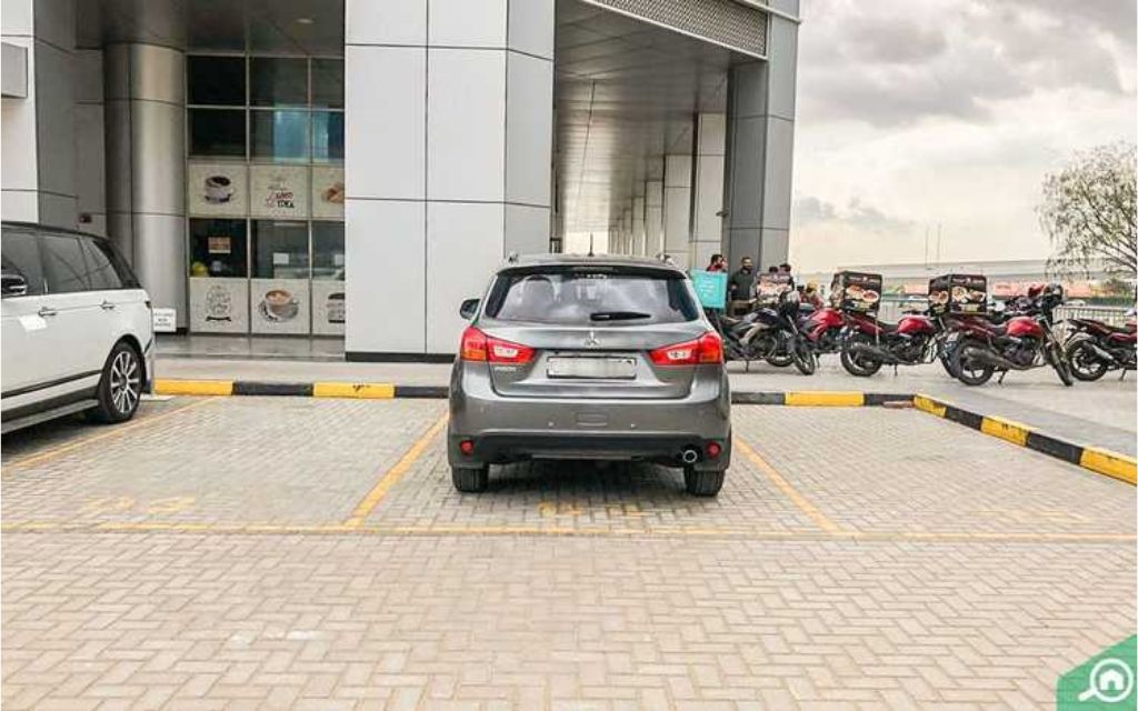 يشتمل البرج على موقف سيارات مؤلف من ثلاثة طوابق تحت الأرض، ويسمح للوحدات التجارية بصف أعداد معينة من السيارات فيه حسب مساحاتها. يذكر توفر مساحات خارجية لصف السيارات.