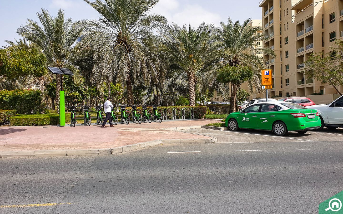 يضم البرج مواقف سيارات يمكن للسكان والزوار صف سياراتهم فيها.