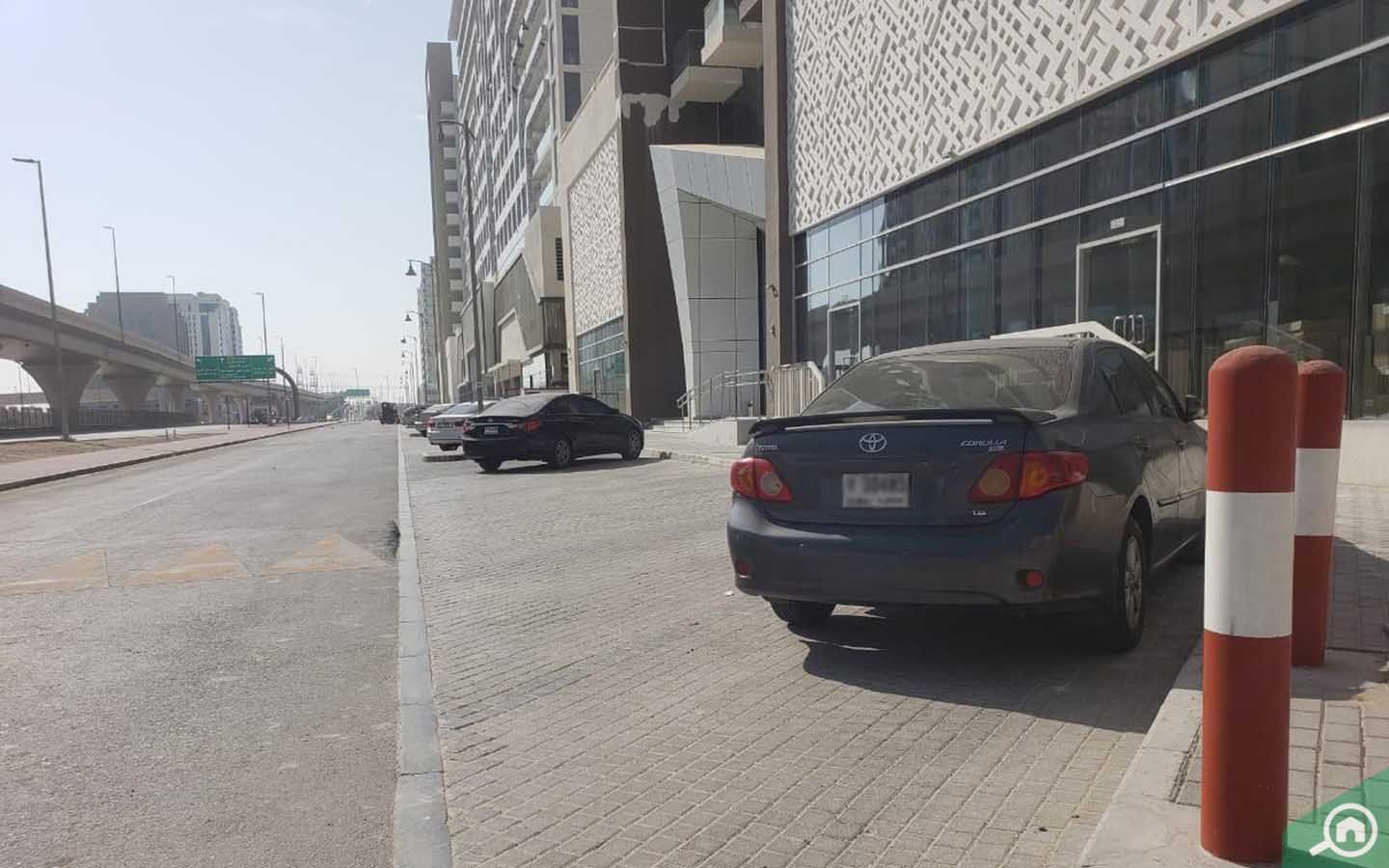 يتم تخصيص مواقف سيارات للمقيمين في الوحدات السكنية، كما يمكن للزوار صف سياراتهم في الشارع خارج المبنى أو في مواقف السيارات المتاحة بالأجرة على مدار الساعة.